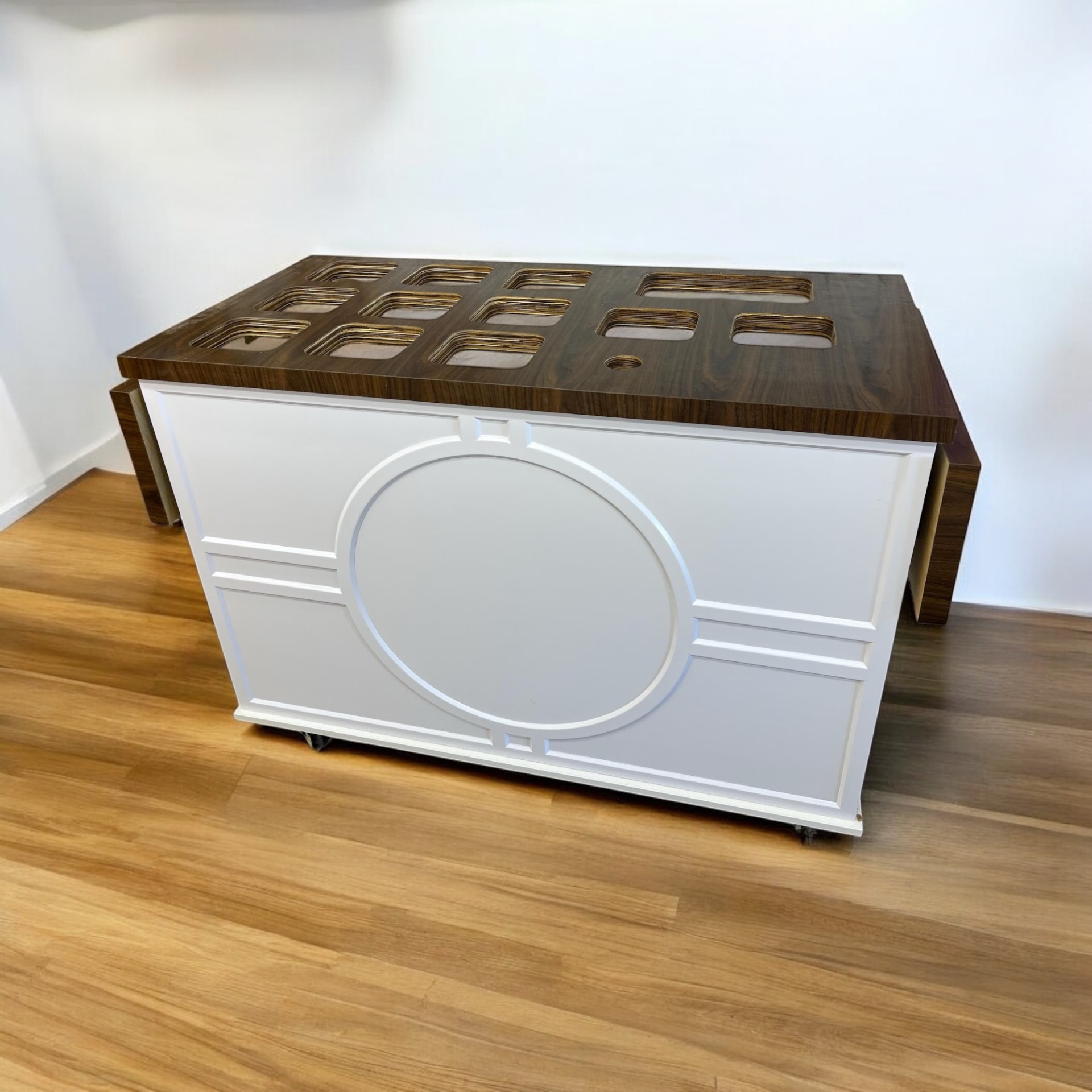 π€Cutouts for Tins: Customize the number and size of cutouts for tins to hold snacks and drinks- 5 options, including a flat top, or design your own