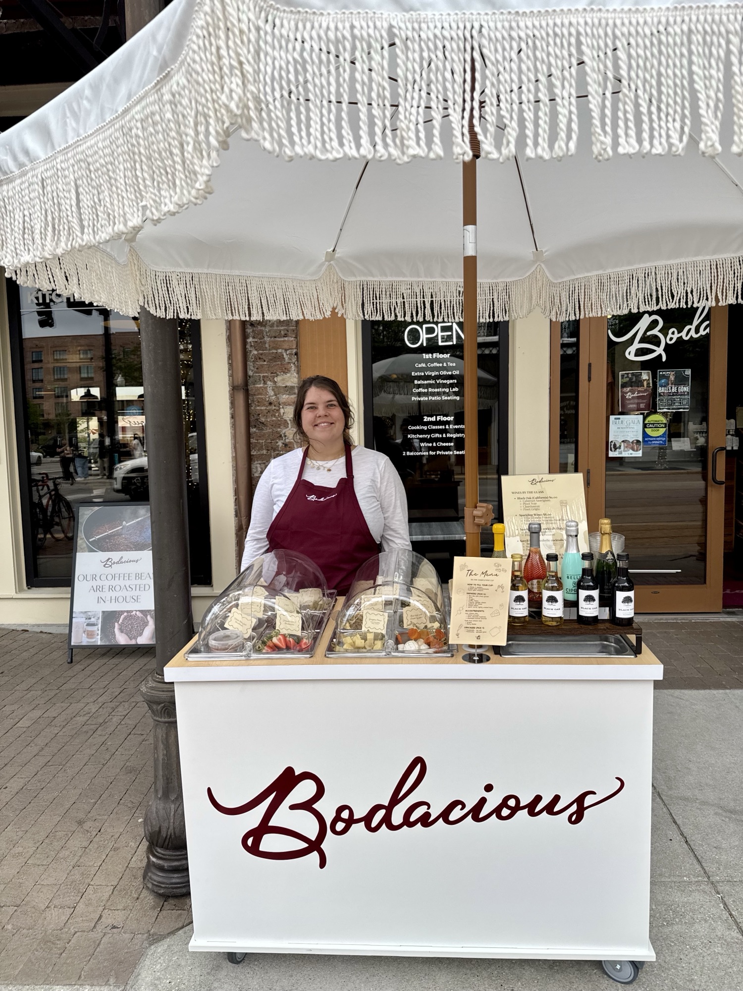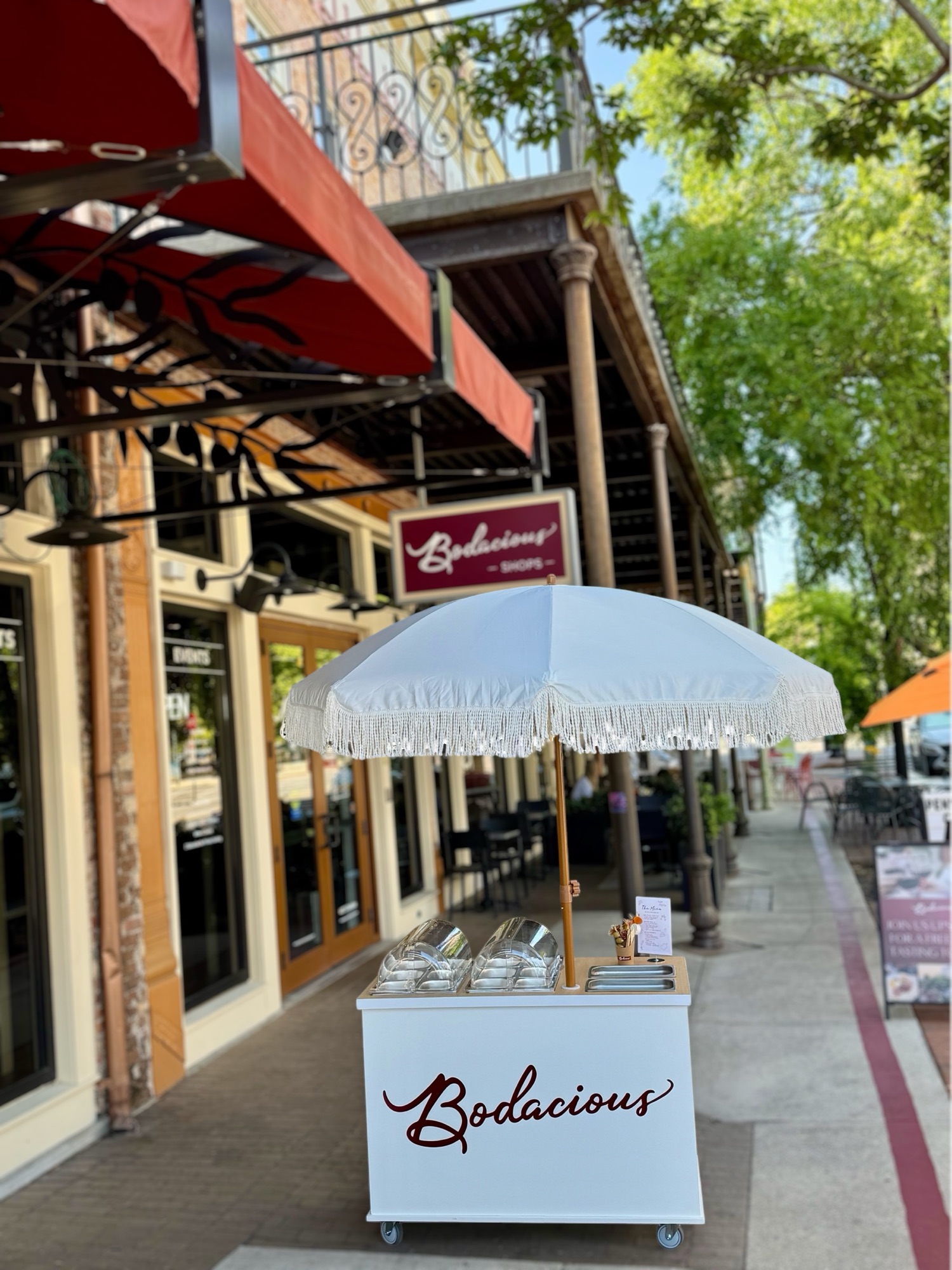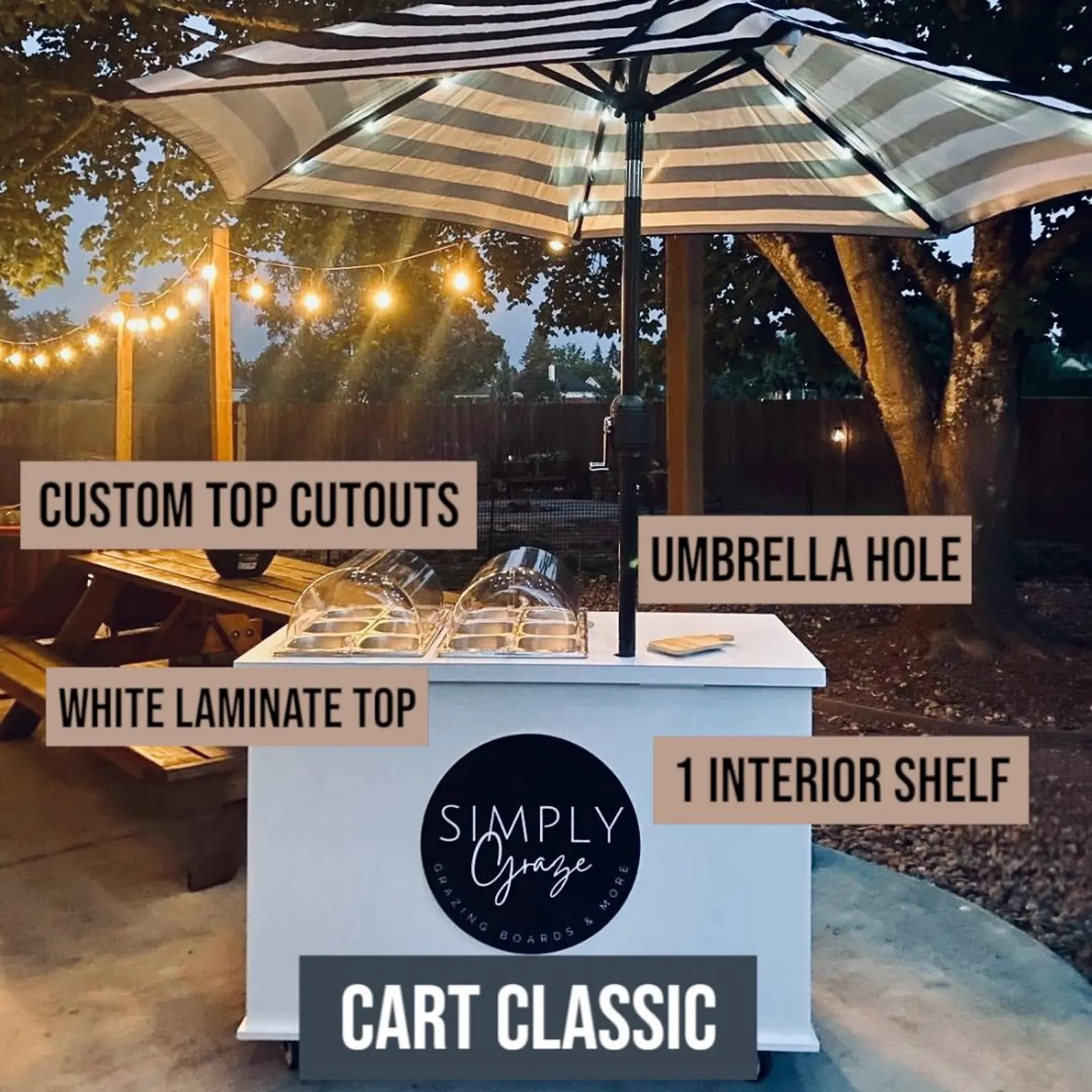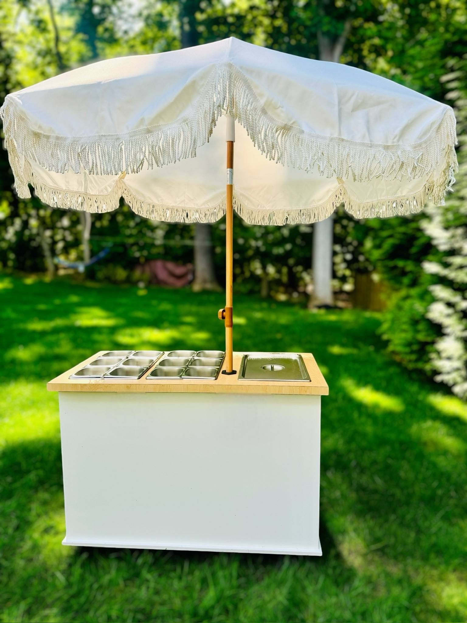 A portable food station perfect for outdoor events, pop-up shops, and street food setups, this mobile beverage cart offers versatility for any occasion. Featuring a collapsible vendor design, it doubles as a charcuterie cart with wheels for easy transport