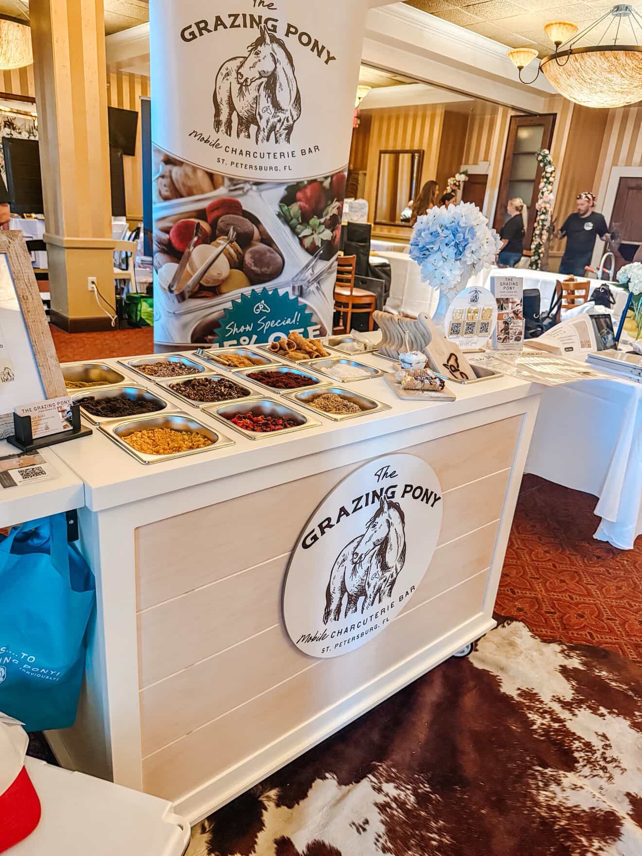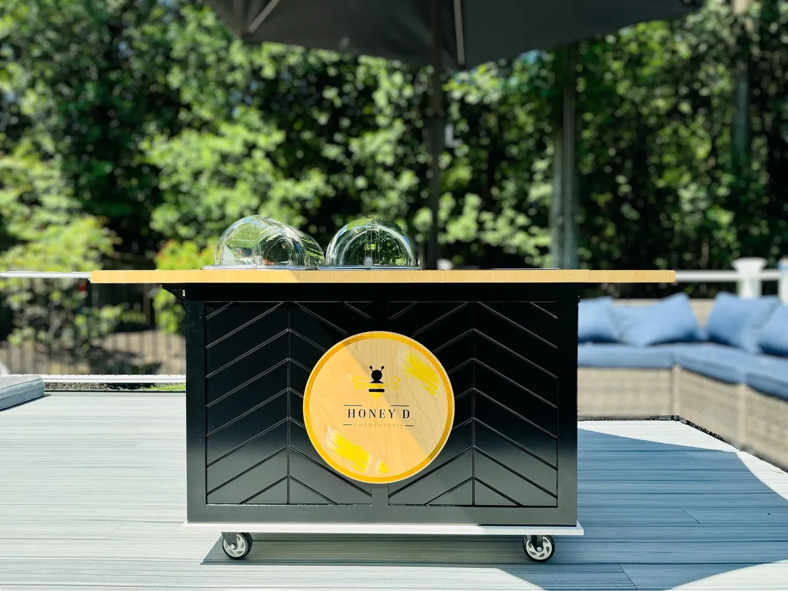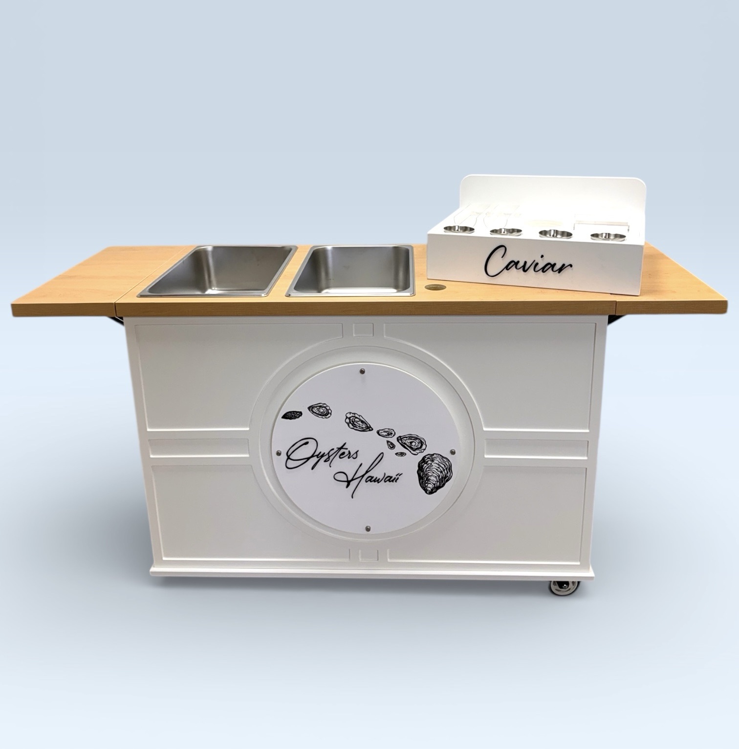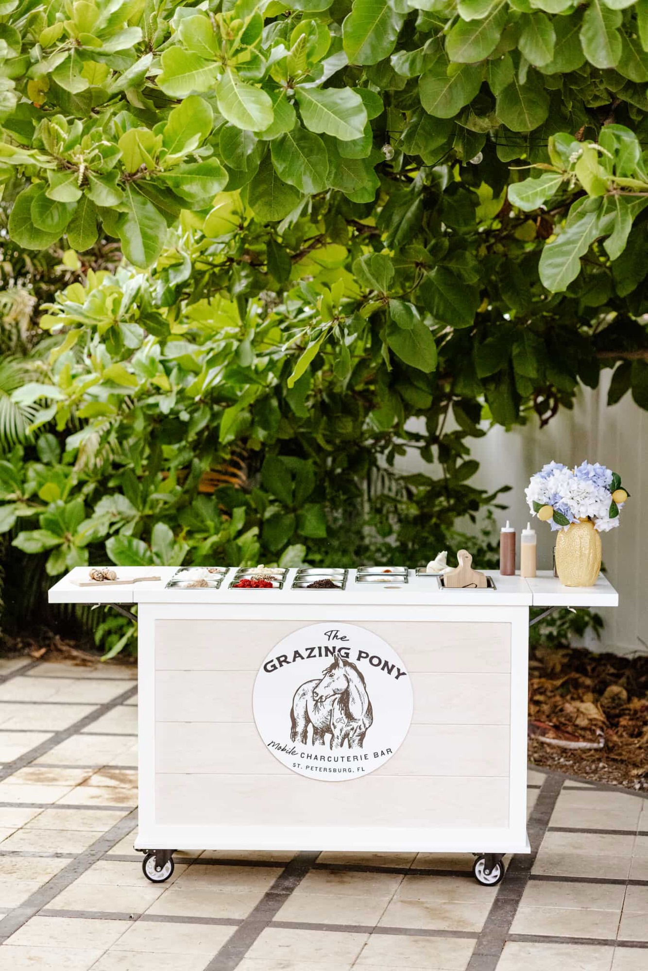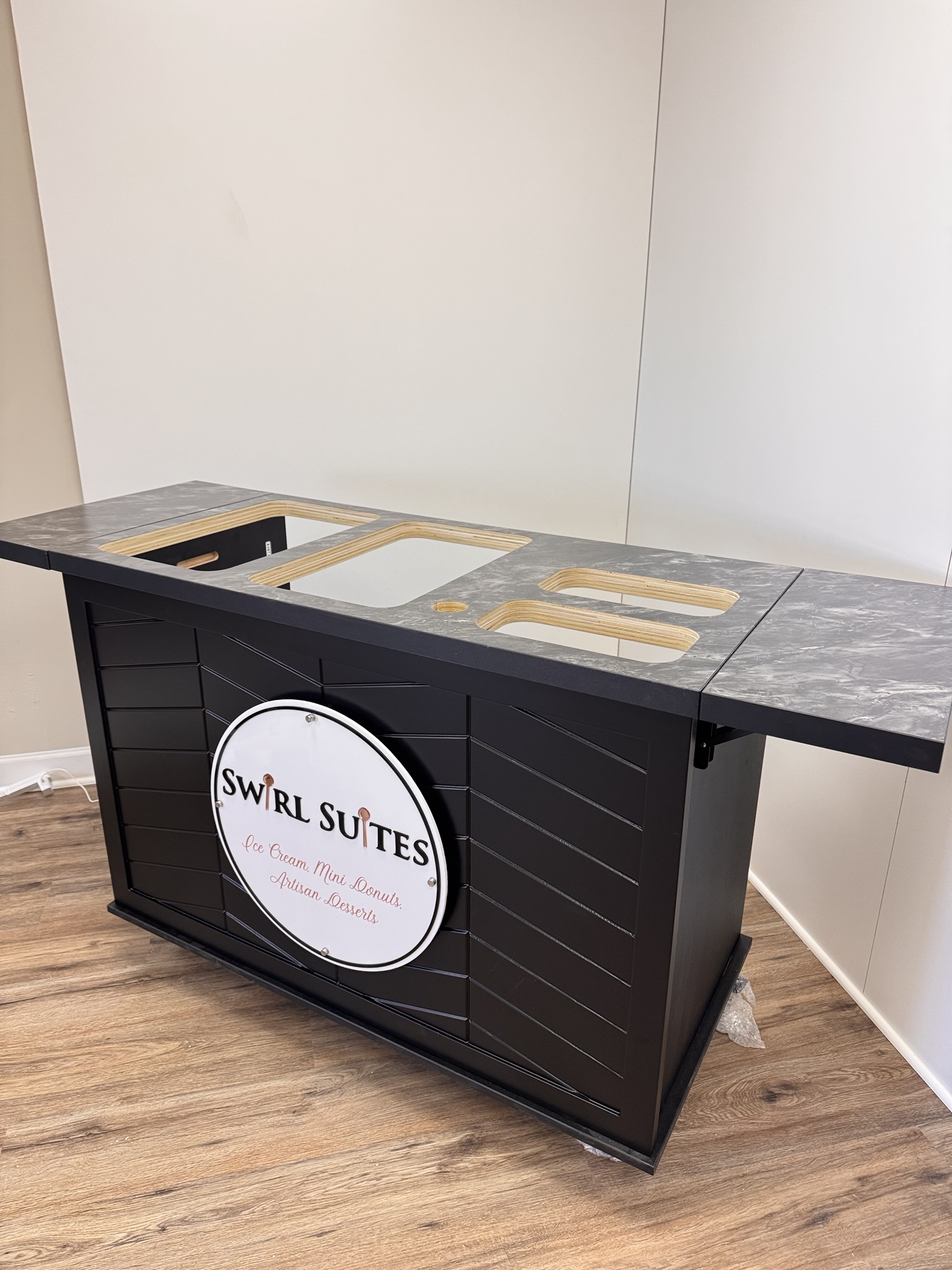 This mobile event cart is perfect for catering, parties, weddings, and vending, offering a versatile solution for serving food like charcuterie, coffee, ice cream, and snacks. The collapsible cart on wheels is ideal for use at farmers markets and other gatherings.