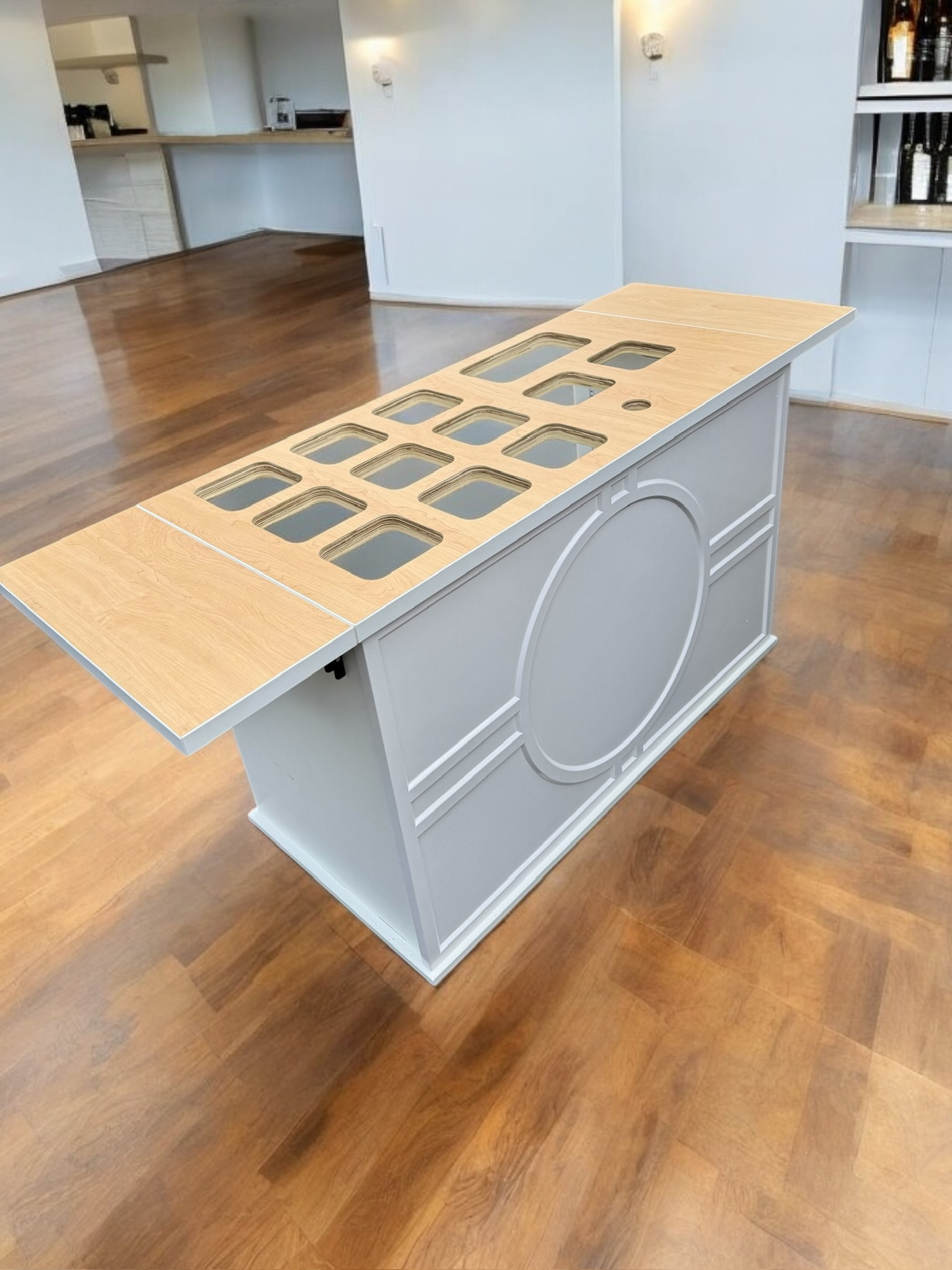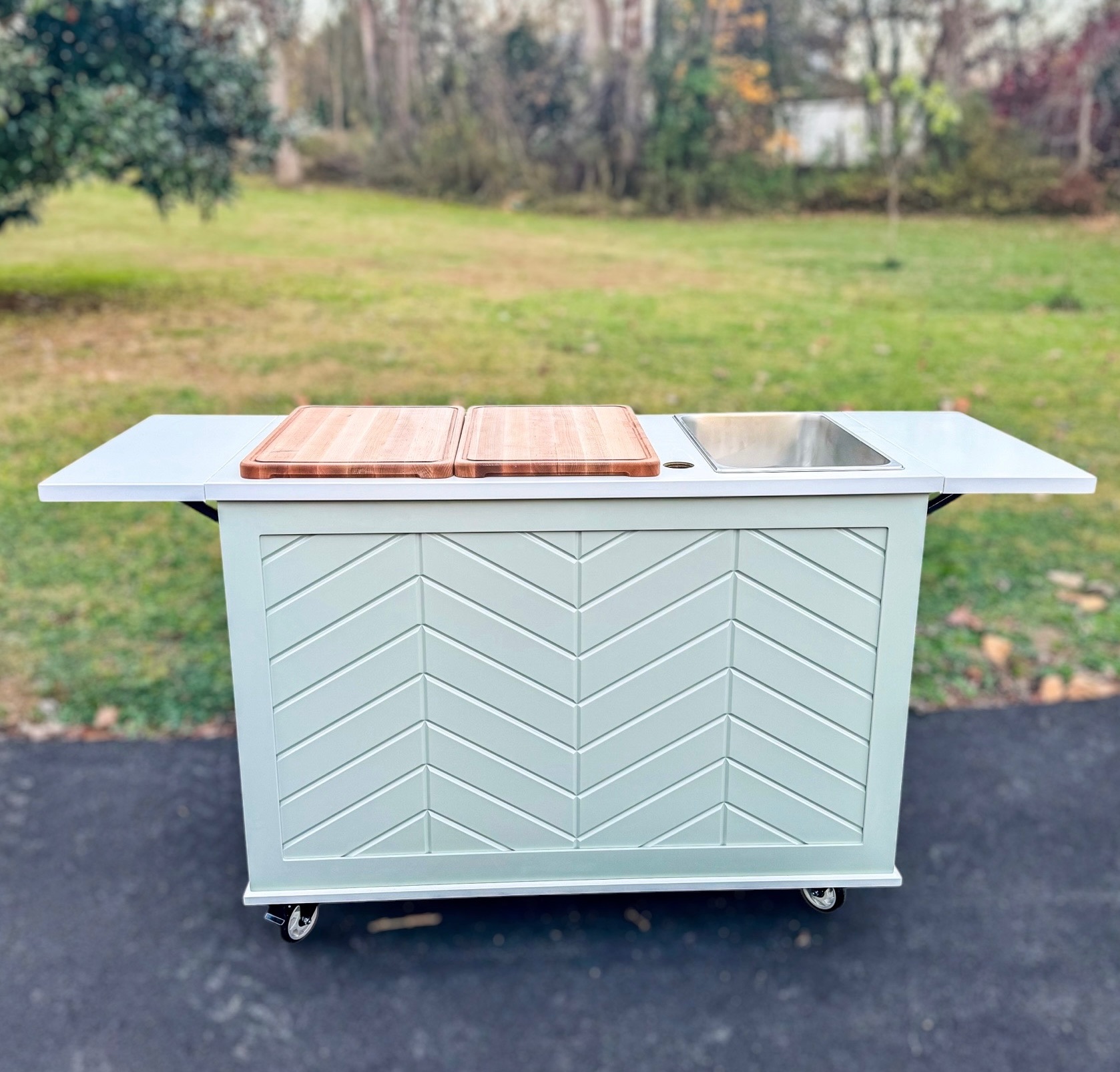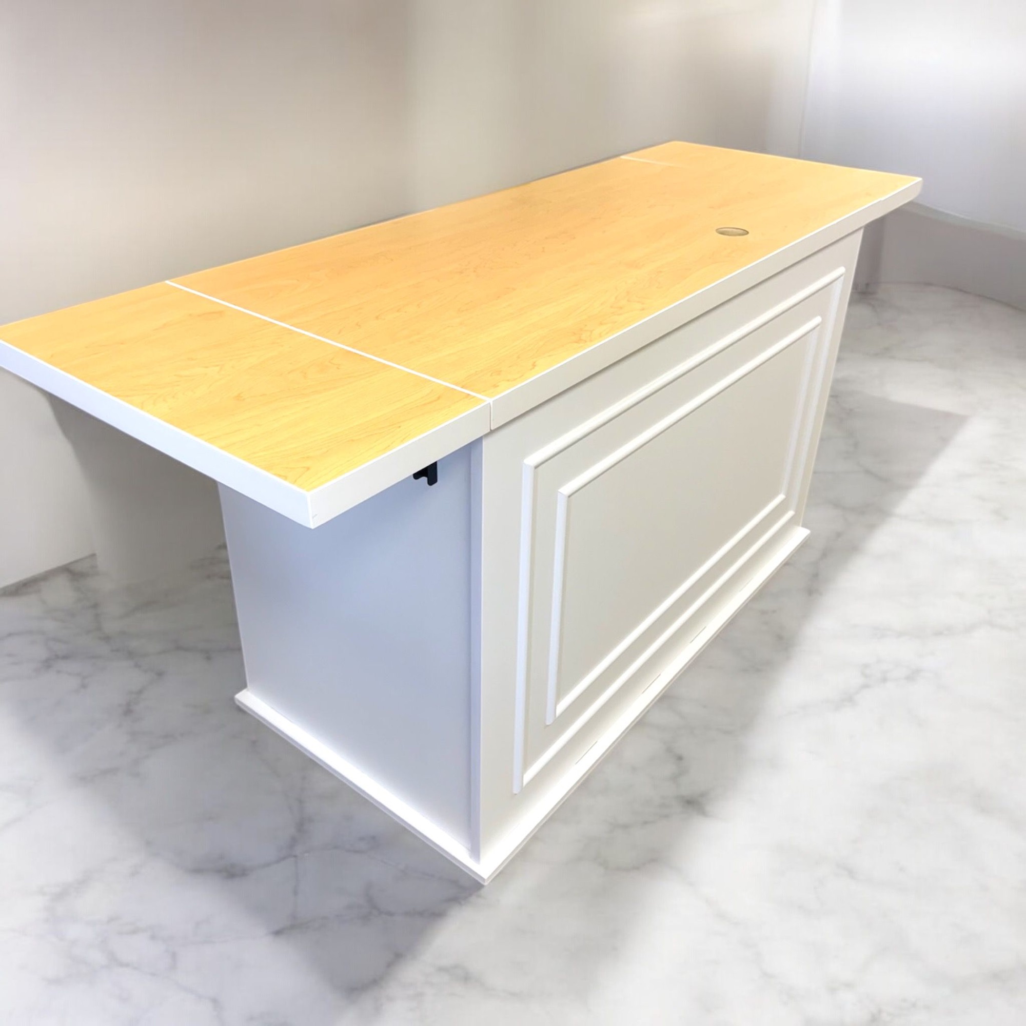 🀍Material: Countertop:Β 1.5β€³ structural plywood core topped with a food-safe, commercial-grade HPL laminate. Smooth, easy to clean, and built to last. Lightweight yet solid -the countertop will not bow.Β Body: 3/4β€³ structural plywood with white liner. Front panel is painted.