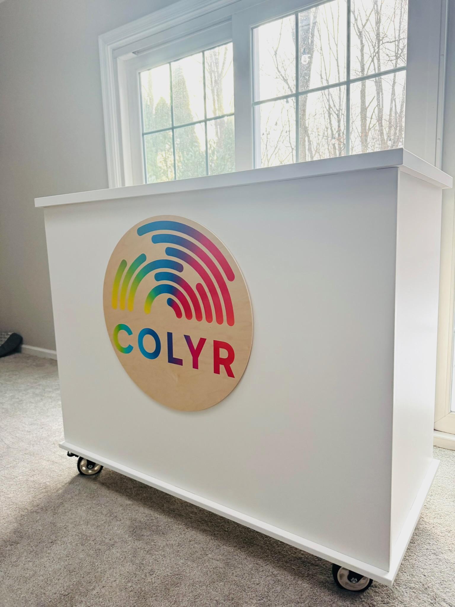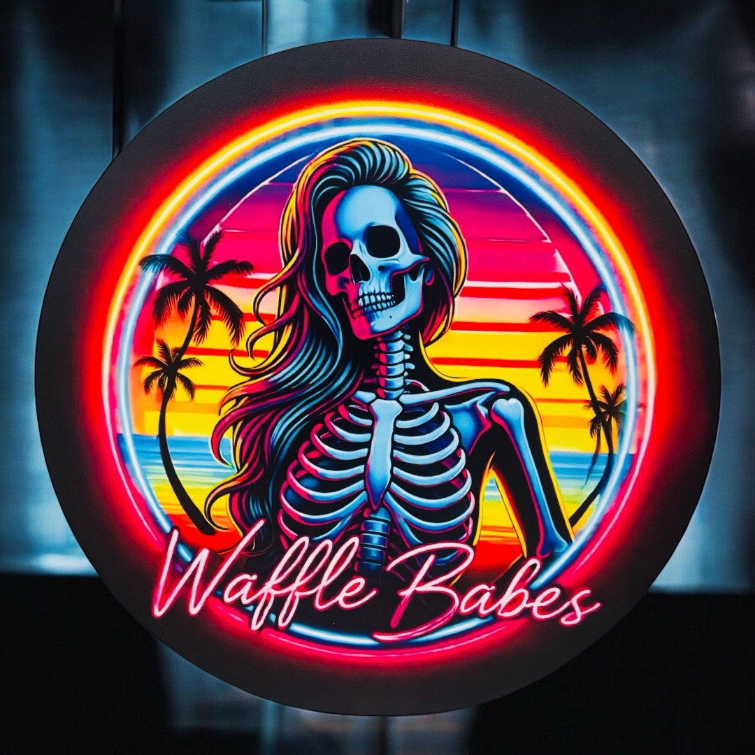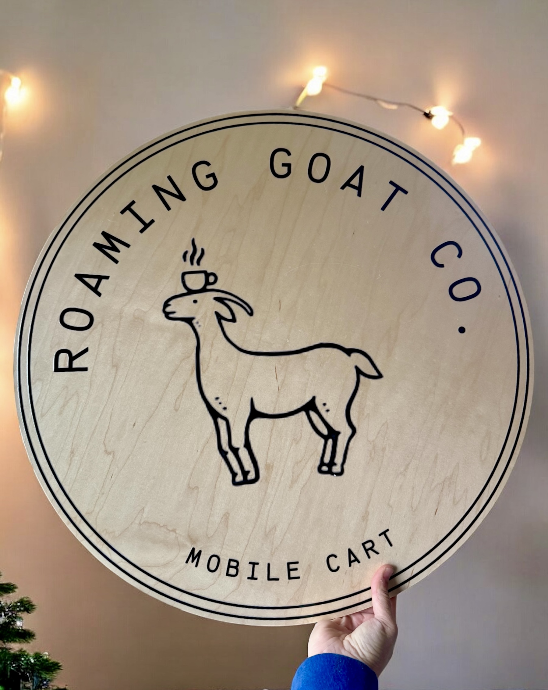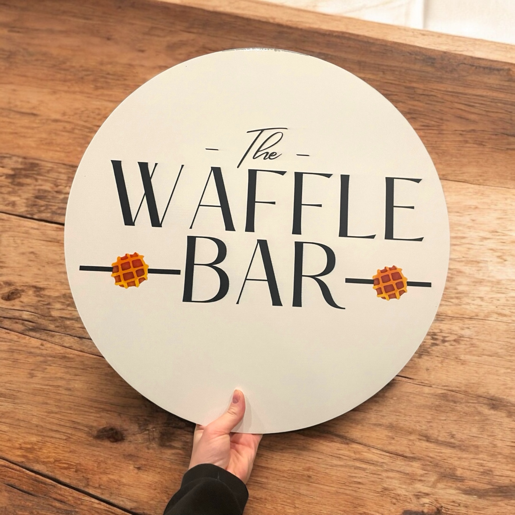 Our custom circular wooden sign is perfect for a mobile charcuterie cart, featuring a full-color logo for a snack cart. This wood sign is ideal for collapsible food and drink carts, adding a personalized and eye-catching touch to your mobile setup.