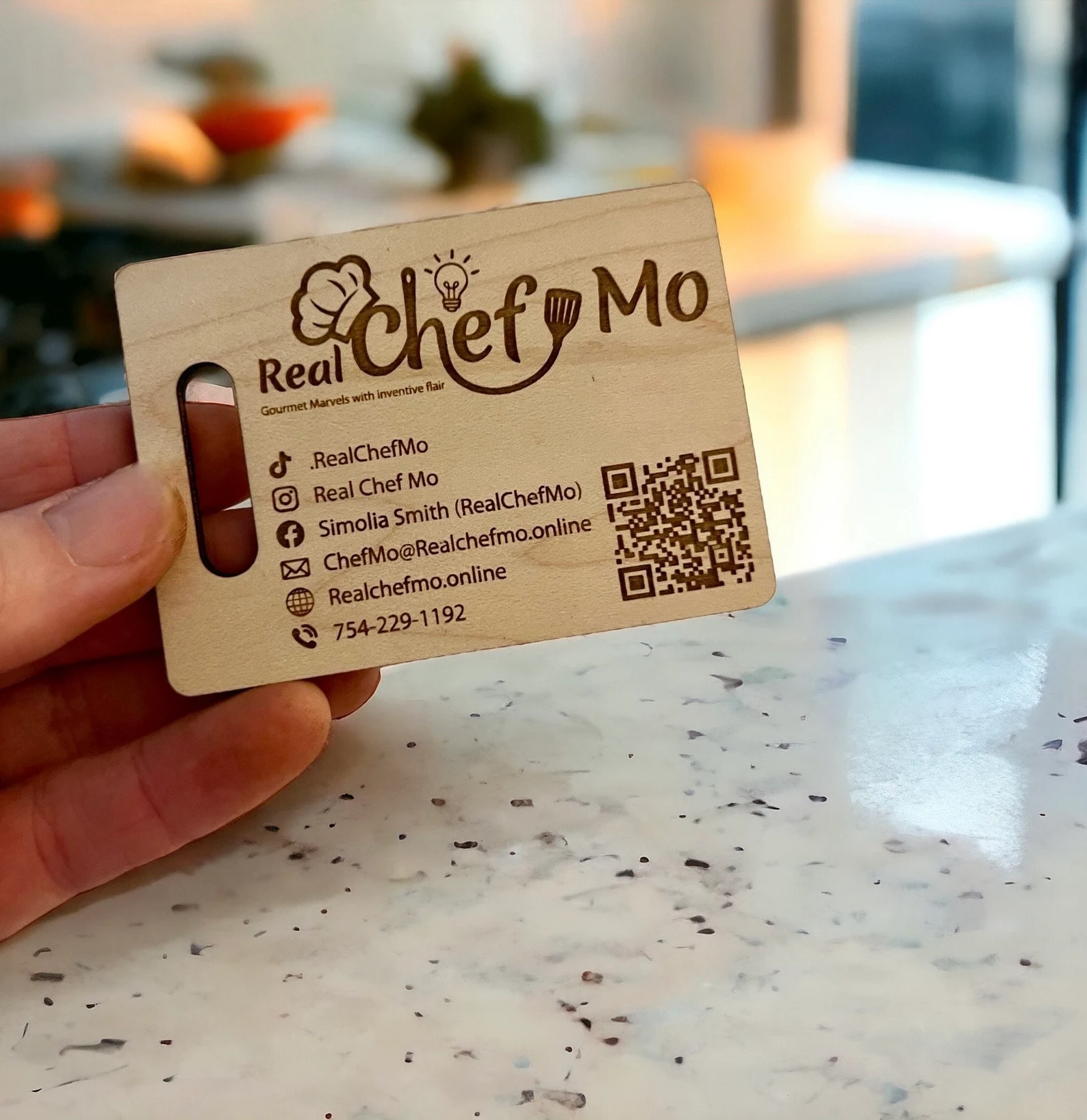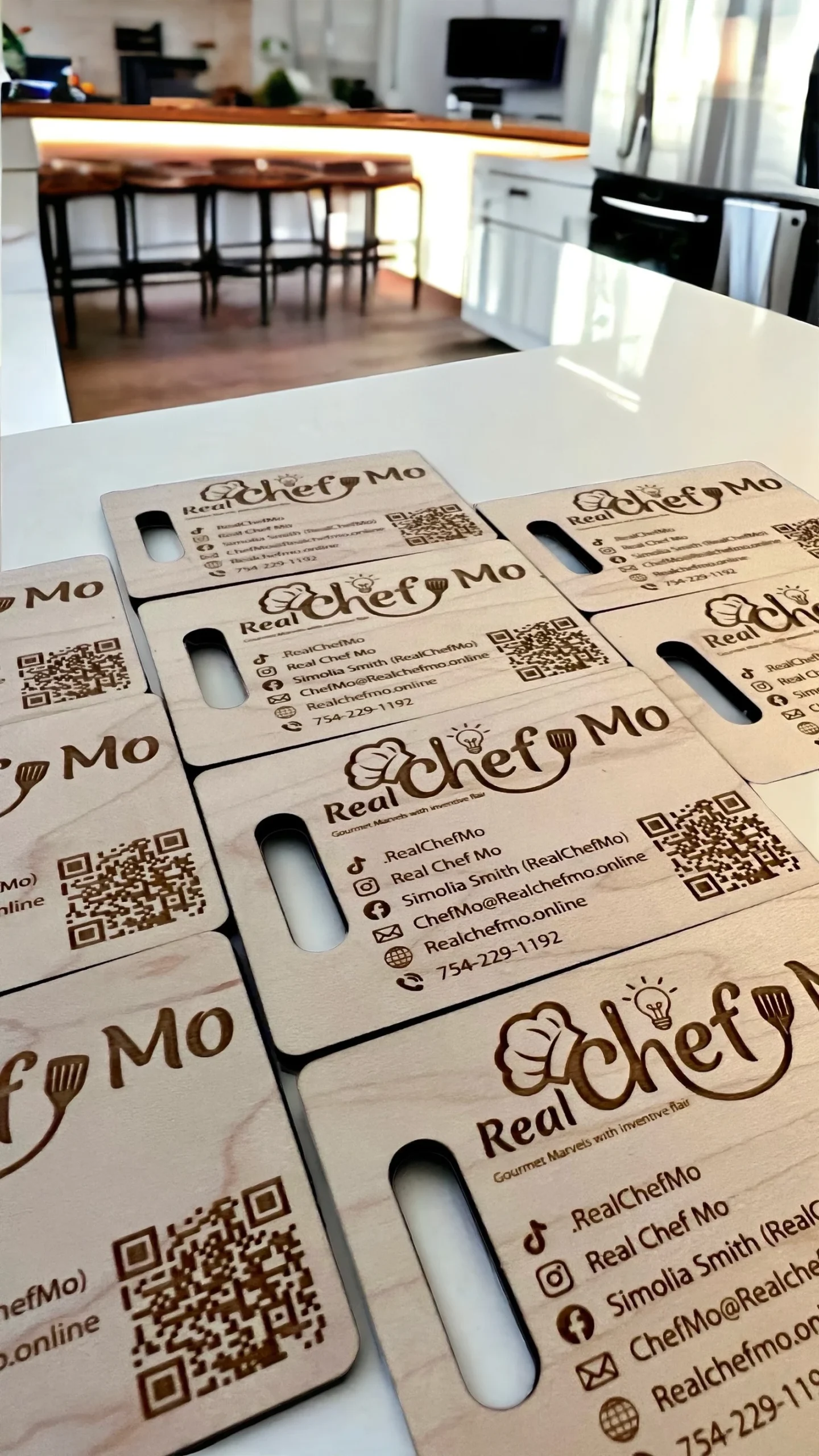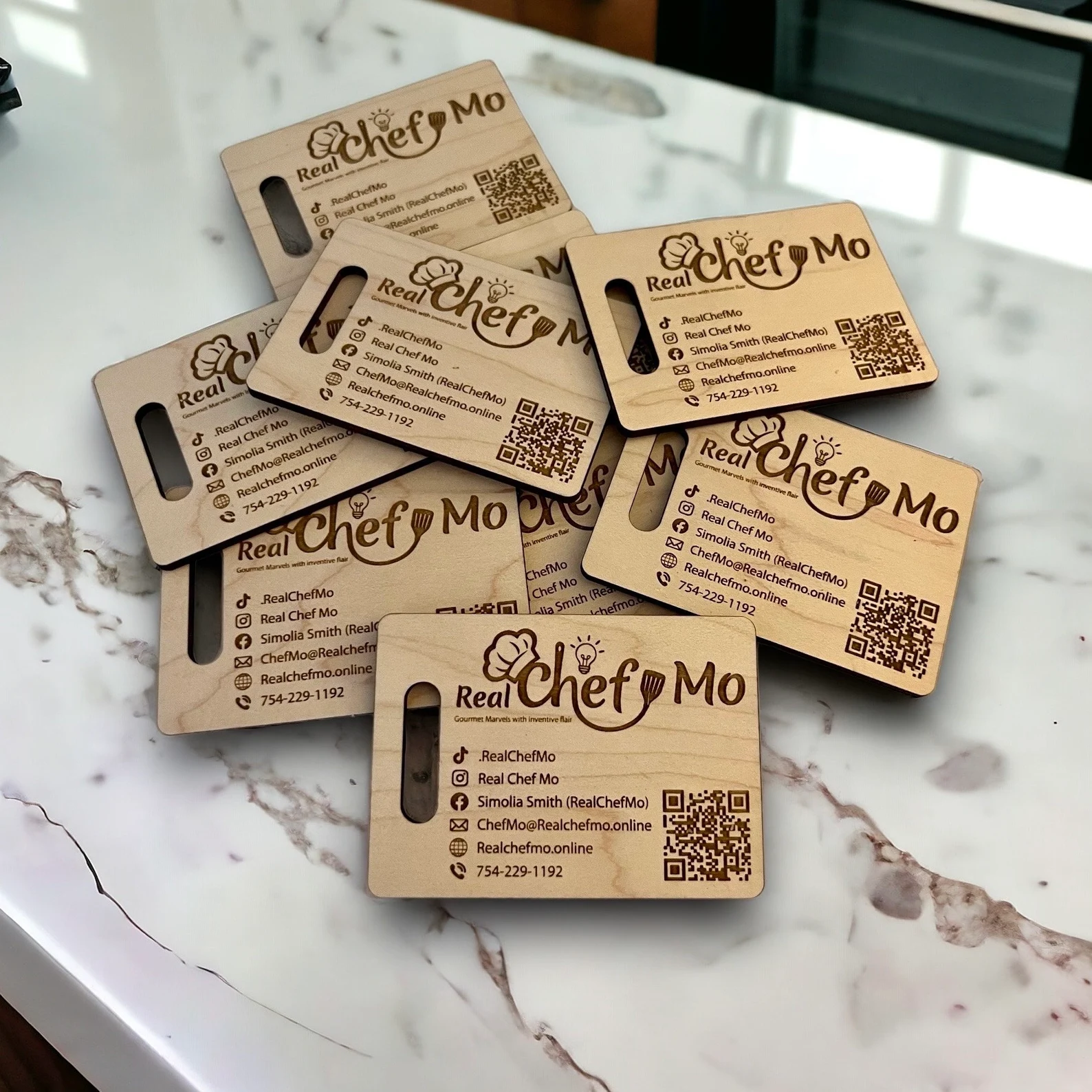Elevate your brand with our Personalized Wooden Business Cards, adorned with Custom Engraving and a distinctive Charcuterie Business Card design. Incorporating Logo, QR Code, and a cutting board-inspired layout, these cards are tailored for Catering Business excellence, presenting a unique blend of sophistication and personalized branding.