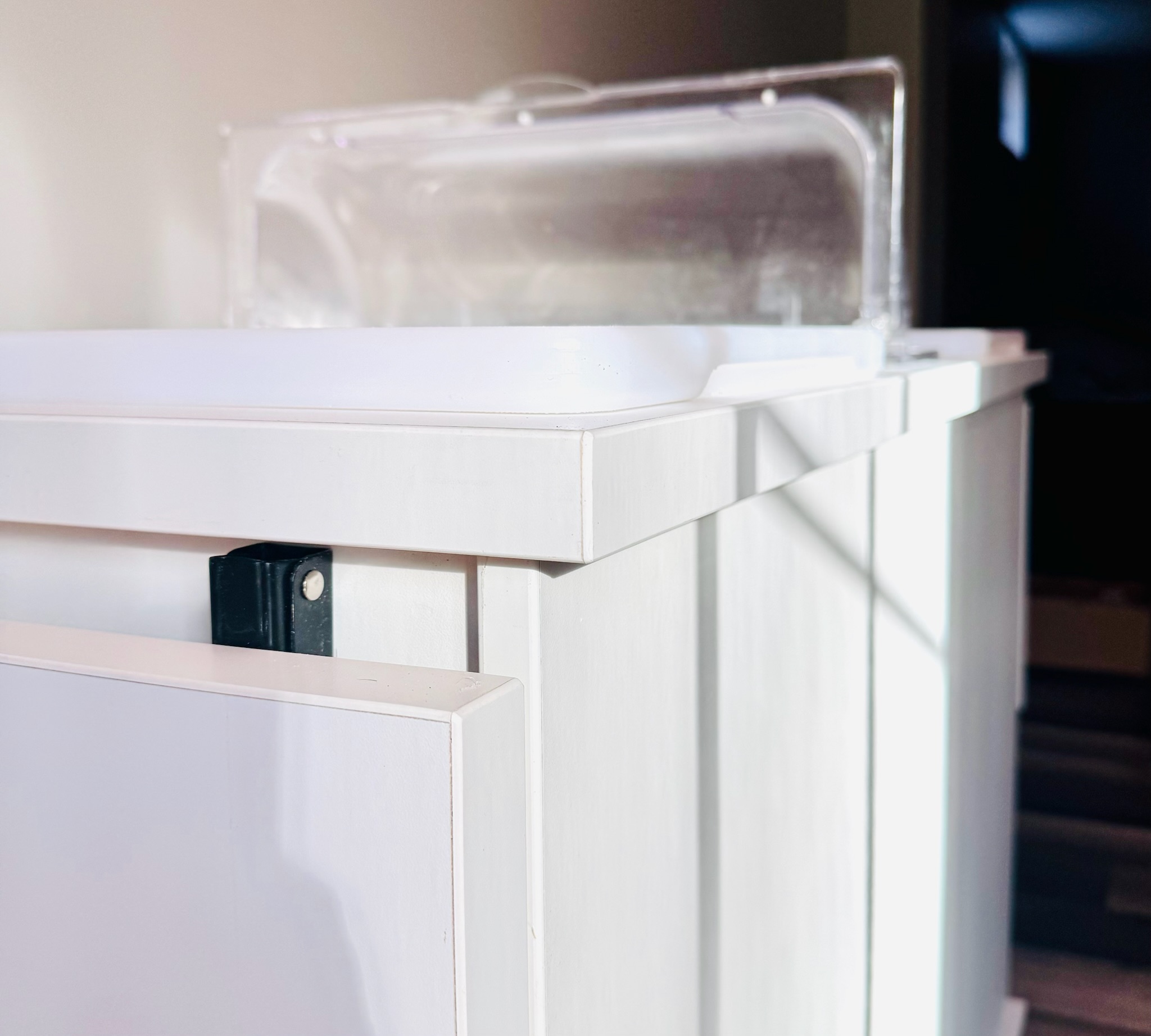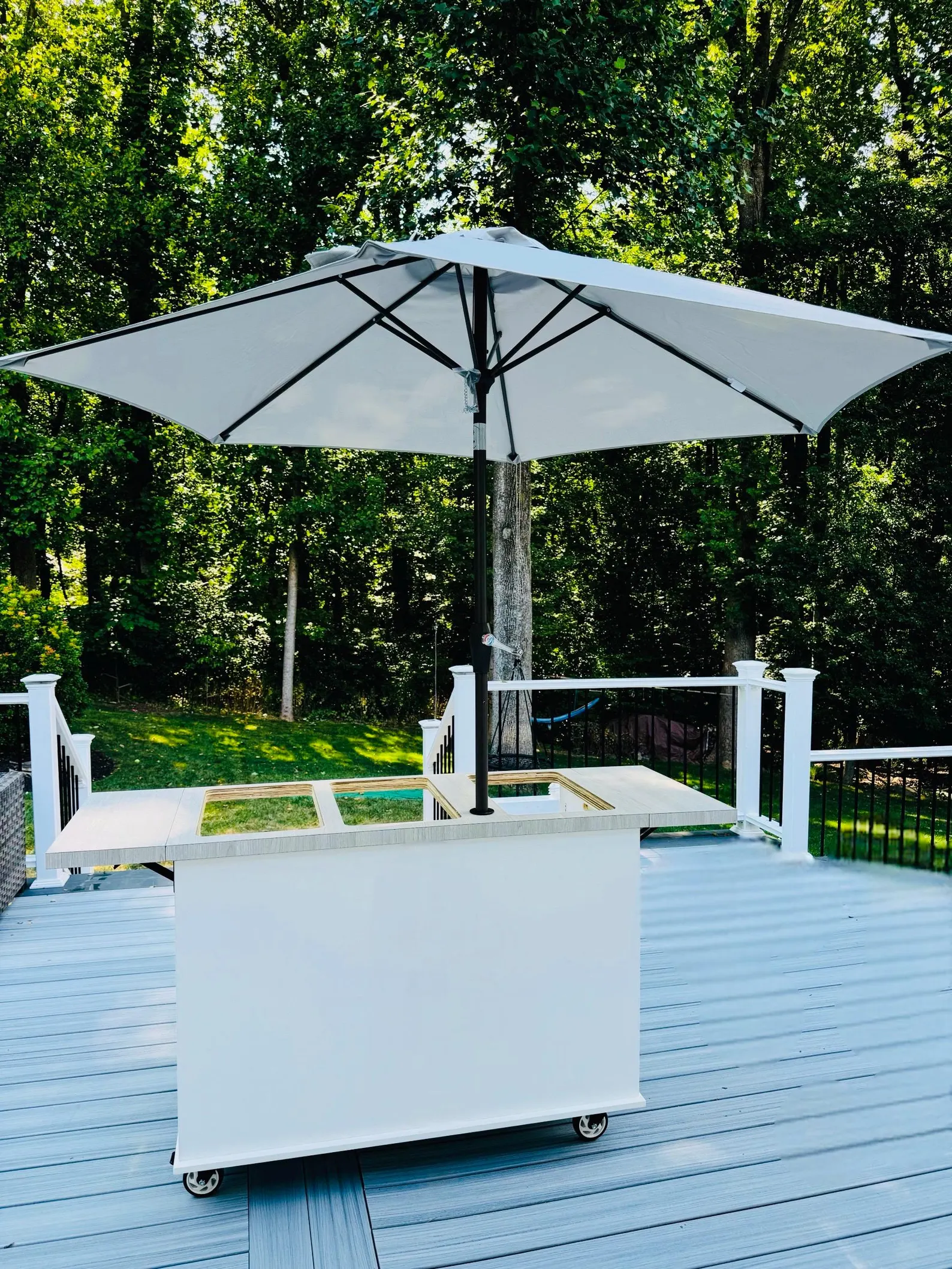 🀍Material: Countertop: 1.5β€³ structural plywood core topped with a food-safe, commercial-grade HPL laminate. Smooth, easy to clean, and built to last. Lightweight yet solid -the countertop will not bow. Body: 3/4β€³ structural plywood with white liner (Not painted-more durable)!