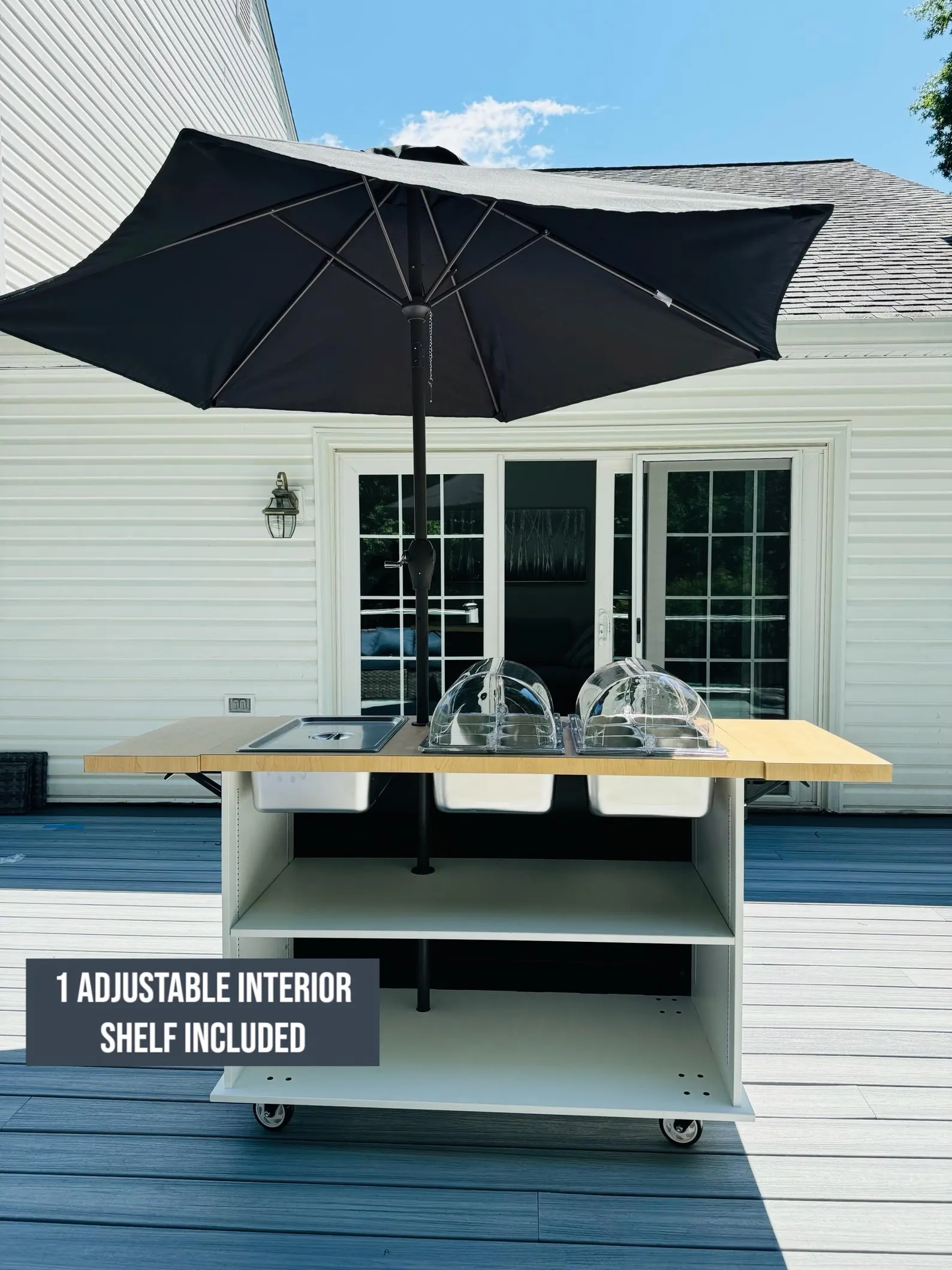 The Portable Serving Cart is perfect for catering at weddings, events, and pop-ups. Use it as a charcuterie cart, coffee cart, ice cream cart, or snack cart at street fairs.